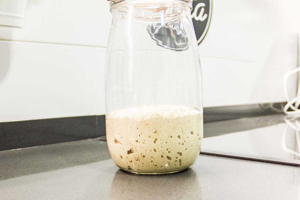 • Lo primero que haremos será refrescar previamente nuestra masa madre para tenerla lista y fuerte para la receta.