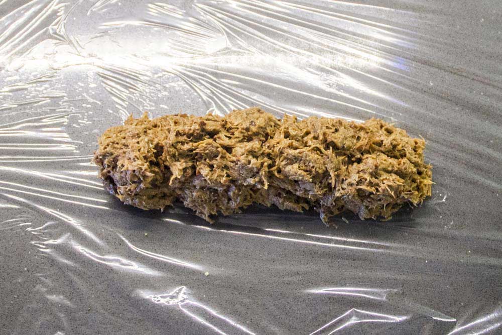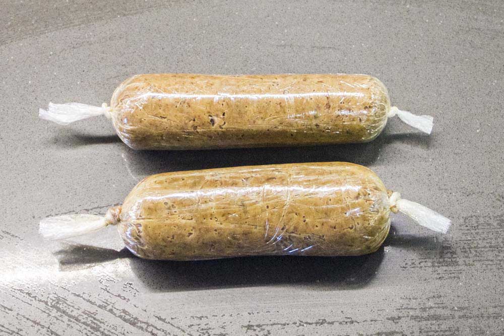 • Con la ayuda del papel film hacemos un rulo cerrándolo como si fuera un caramelo, bien apretado para darle forma y consistencia y dejamos enfriar un par de horas en el frigorífico. También podéis dejarlo hecho del día anterior.