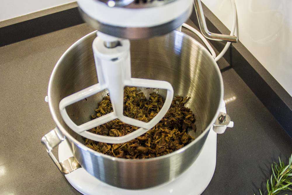 • Con unos guantes desmigamos la carne retirando todos los huesos y las partes más duras.