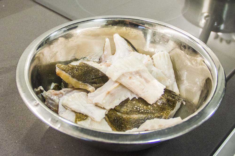 - Lavamos las espinas y pieles del pescado y las reservamos en agua fria con hielo. Para un caldo casero o un fumet proponemos el pescado blanco.