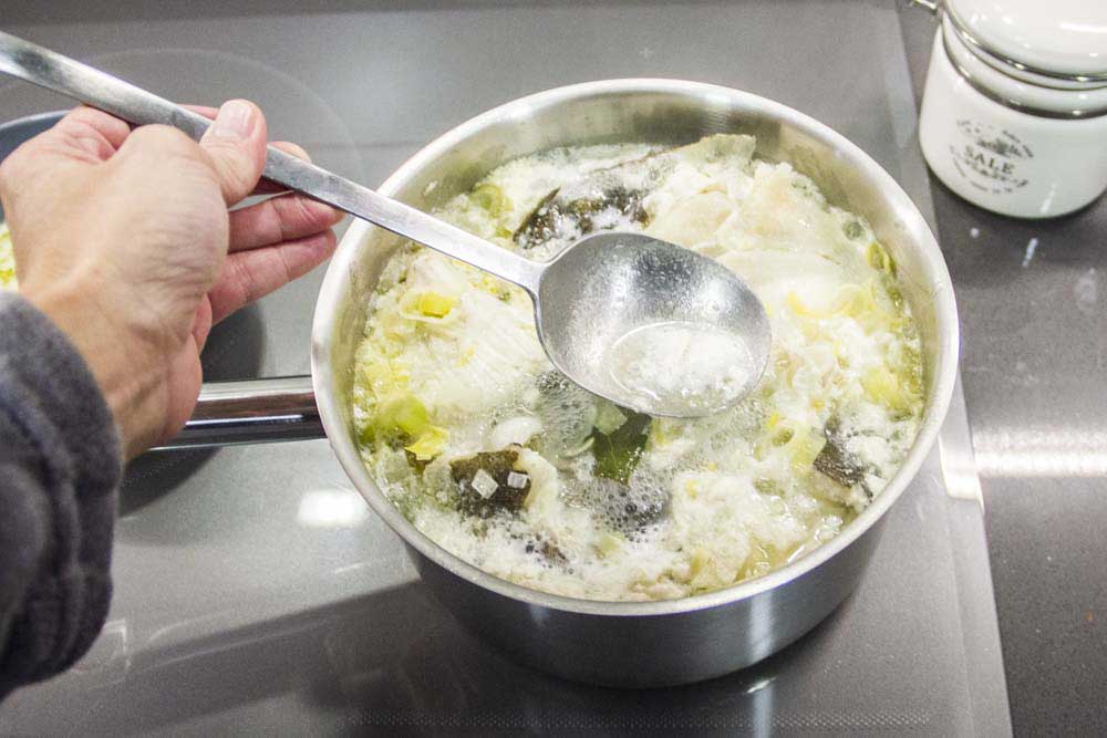 - Desespumamos con una cuchara las impurezas de la superficie y bajamos el fuego a media potencia y cocinaremos durante unos 25 minutos.